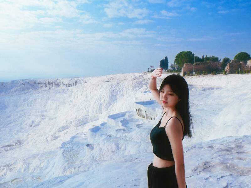 棉花堡(帕姆卡莱 Pamukkale)有天然钙化温泉池。为防止鞋底磨损棉花堡的石灰岩,一定要赤脚进入,然而石灰岩表面有些部分很硌脚。今天看到的棉花堡的颜色相当清澈纯净,并没有像网上的传言一样只是“照骗”,发污发黄。本来我是抱着“摄影全靠后期”的心态去的,结果拍了一堆能直出的原图。虽然没有人间仙境那么夸张,但作为一个旅游景区来说,这样的自然景观完全够了。半圆形的白色阶梯层层叠叠,像大朵棉花矗立在山丘上;成分是石灰华,也叫钙华,是在地表由岩溶泉、河、湖水沉积形成的大孔隙次生碳酸钙。