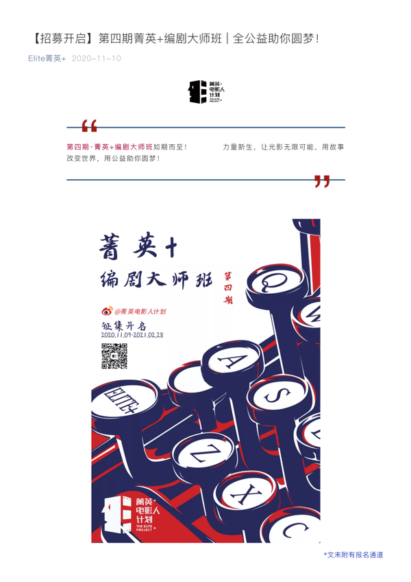 Wanda Pictures' Scriptwriter Workshop Poster 万达影业工坊海报